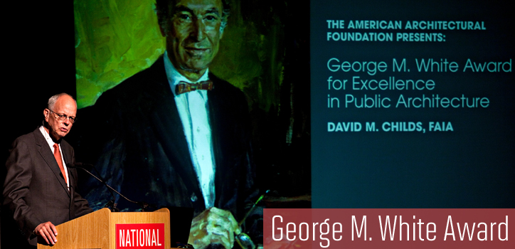 The award is named for the late George M. White, FAIA, retired architect of the Capitol, who, during his nearly 25-year tenure, oversaw key construction and restoration projects around the Capitol. On Thursday, October 11, 2012, the American Architectural Foundation (AAF) honored David M. Childs, FAIA, as the inaugural recipient of the George M. White Award for Excellence in Public Architecture at the National Building Museum in Washington, D.C.