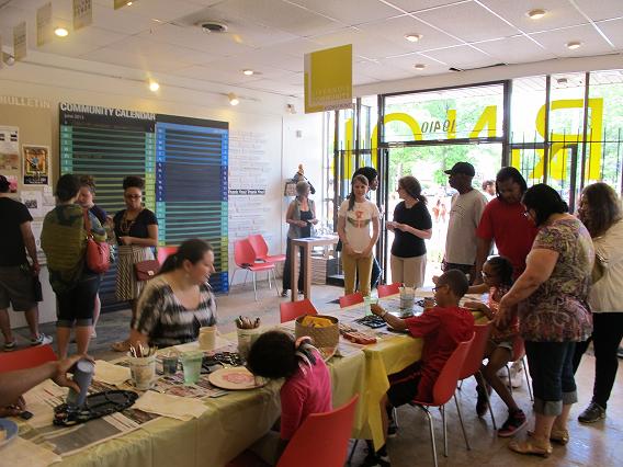 How else is this pop-up environment different than the others? Often times, the preparation for a pop-up space is concealed until a surprise reveal, but the doors to the Livernois Community Storefront have been open throughout the entire pop-up process, encouraging an atmosphere of continuous public engagement. Here, visitors are drawn inside by the creatively designed wall map of the neighborhood, the community bulletin board, or the art gallery. Many long conversations with passersby have begun with, “What’s going on here?” “Can I hang up my flyer on your bulletin board?” “Is a business going in here soon?” or the nostalgic statement, “I remember when…”